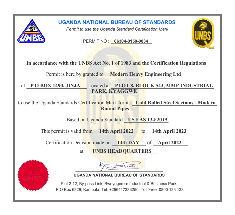 MHELUG is a young and dynamic and ever evolving company established in Jinja, Uganda in February 2020. We hold a strong hand in manufacturing quality Pre-Engineered Building (PEB) solutions & Electric Resistance Welded pipes (ERW).